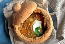 Суп грибной в хлебной чаше